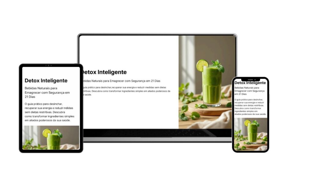 O Detox Inteligente é um ebook meticulosamente desenvolvido para ajudar você a desinchar, recuperar sua energia e reduzir medidas de forma segura e sustentável em 21 dias. Não é mais um método radical ou teórico — é um passo a passo prático, fácil de aplicar e que realmente funciona na vida real.