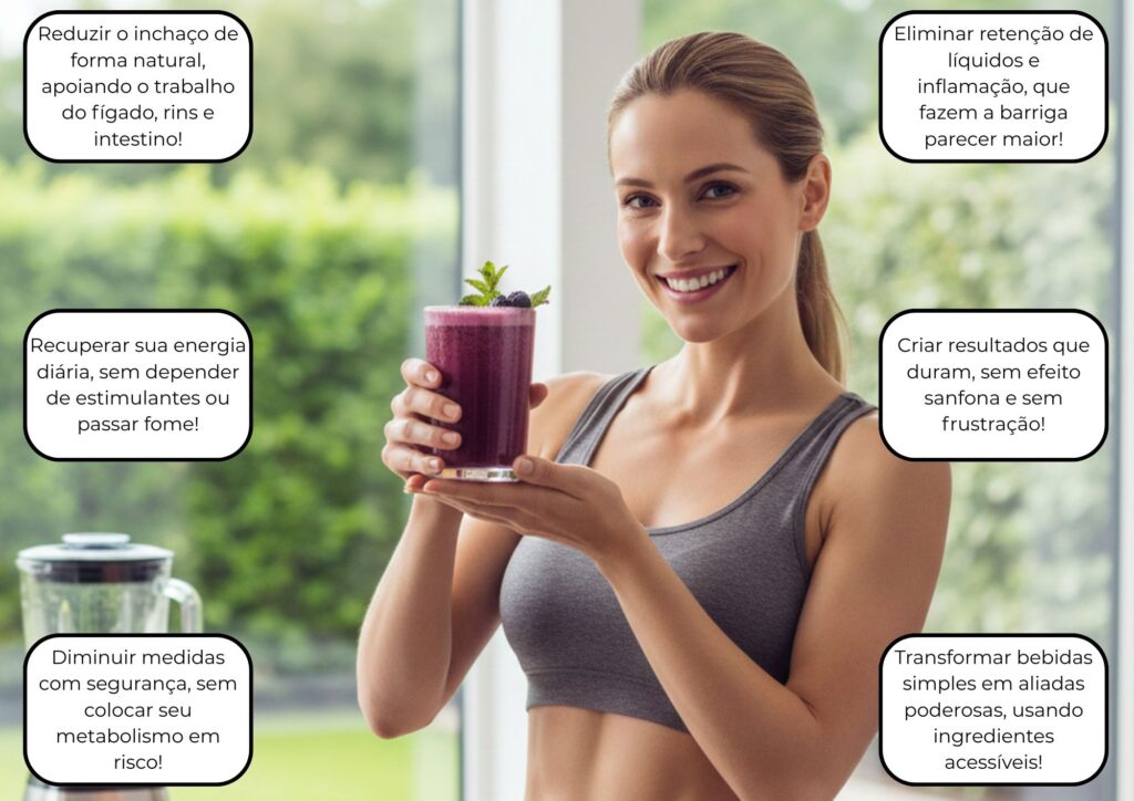 Não. O Detox Inteligente não é uma dieta restritiva. Você vai aprender a usar bebidas naturais para apoiar o funcionamento do seu corpo, desinchar e reduzir medidas sem deixar de comer. O foco é equilíbrio, não sofrimento.